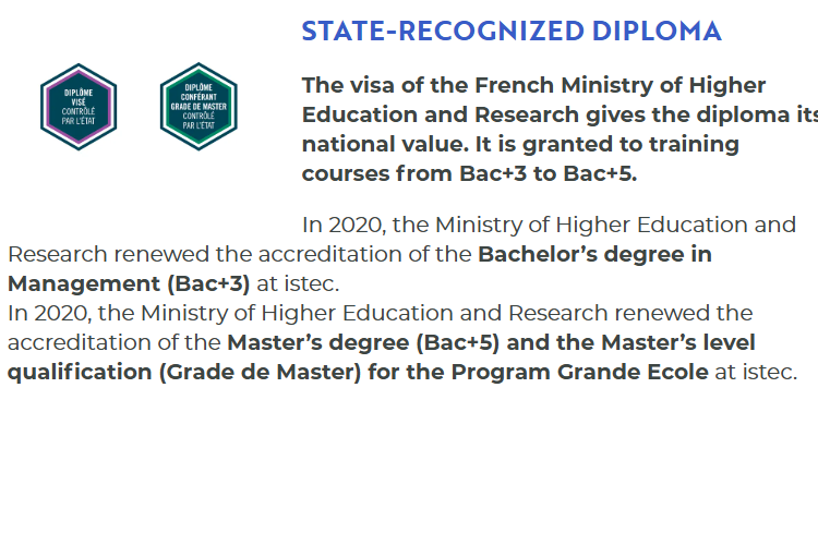 Istec Business School Paris, founded in 1961, is one of the 38 top business schools in France. As a member of the Conférence des Grandes Ecoles, Istec is the only business school with a Master’s degree to offer work-study programs starting from the first year of study, both in the Bachelor’s program and the Grande Ecole program.